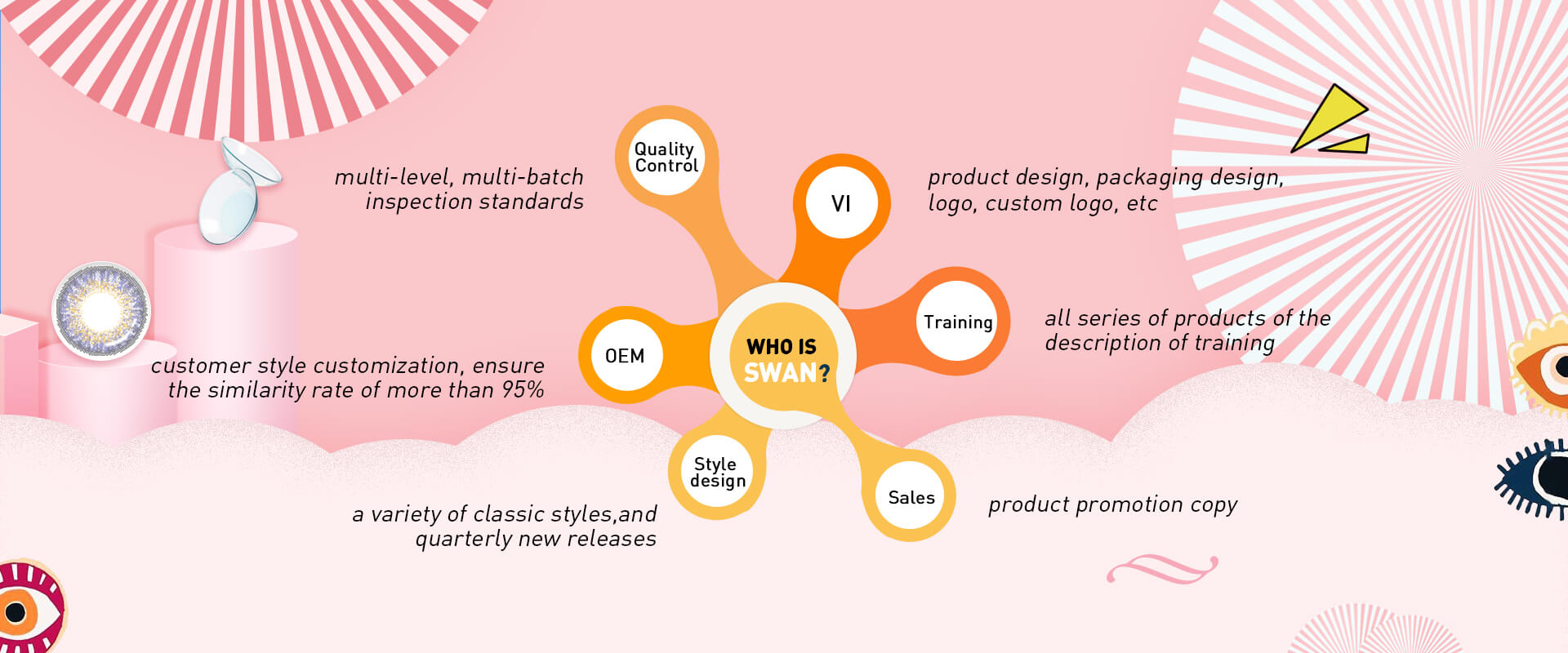 JiangSu Swan Optical Co., LTD located in DanYang, the hometown of Chinese glasses. "To provide customers with diversified solutions" is the mission of our company. Our main business is engaged in the design, innovation, and marketing for contact lenses, solution, eye drop, eye mask,eye wash and other accessories about eye care.